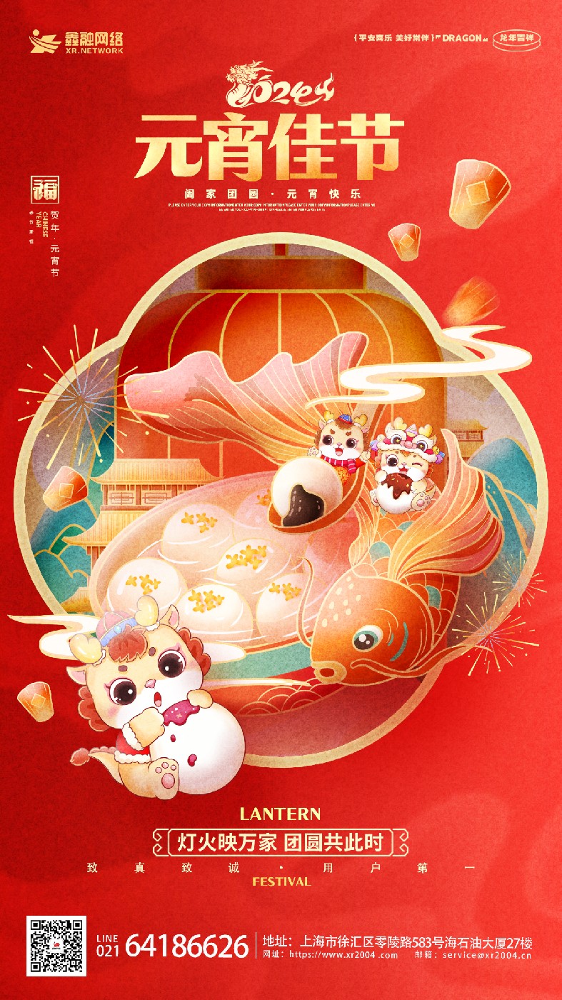 隨著龍年農歷春節(jié)的臨近,鑫融網絡全體員工滿懷喜悅與祝福,向廣大客戶、合作伙伴以及社會各界致以誠摯的問候。在這個團圓和睦、喜慶祥和的時刻,我們衷心祝愿大家龍年事業(yè)興旺、闔家幸福、萬事如意!龍騰萬里,盛世華章!新的一年,大有可為!