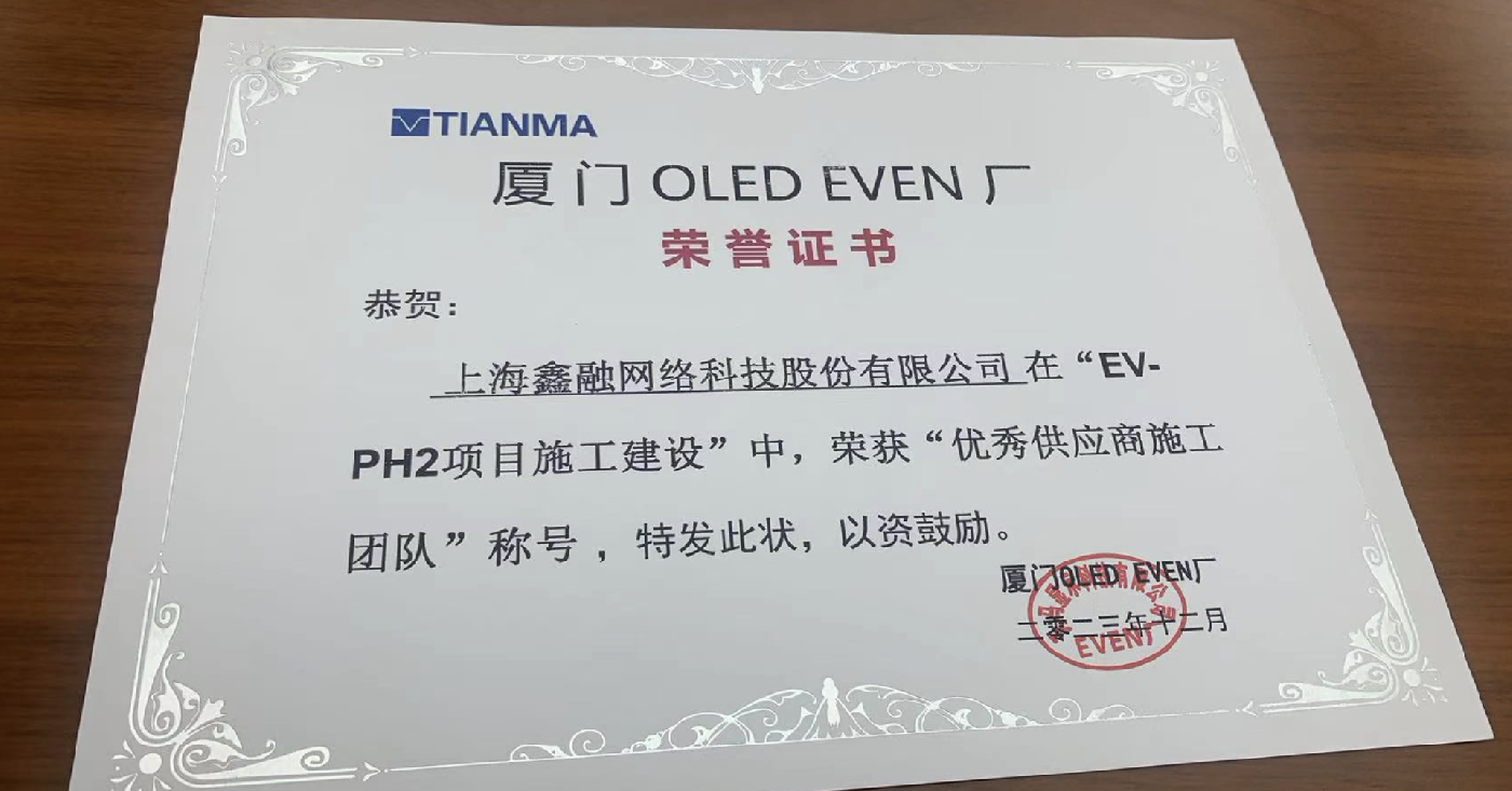 近日,廈門天馬顯示科技有限公司召開PH2-施工階段性總結(jié)會(huì)議,會(huì)議對(duì)第6代柔性AMOLED生產(chǎn)線項(xiàng)目的整體建設(shè)情況進(jìn)行了階段性的總結(jié),并評(píng)選了優(yōu)秀供應(yīng)商。鑫融網(wǎng)絡(luò)在“EVPH2項(xiàng)目施工建設(shè)”中,榮獲客戶頒布“優(yōu)秀供應(yīng)商施工團(tuán)隊(duì)”稱號(hào)。天馬微電子(股票代碼000050),是一家集液晶顯示器研發(fā)、設(shè)計(jì)、生產(chǎn)、銷售和服務(wù)為一體的