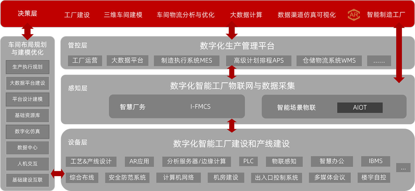 實(shí)現(xiàn)數(shù)據(jù)統(tǒng)一化,集成工業(yè)智能化管理系統(tǒng),打破數(shù)據(jù)孤島化現(xiàn)狀,實(shí)現(xiàn)了設(shè)備可視化,打造智能工廠管控一體化平臺(tái)和工業(yè)智能化管理平臺(tái)。有效提高工廠作業(yè)的綜合監(jiān)管能力、降低企業(yè)運(yùn)營(yíng)成本,實(shí)現(xiàn)生產(chǎn)自動(dòng)化、數(shù)據(jù)可視化、管理精細(xì)化、決策科學(xué)化和服務(wù)高效化,可廣泛應(yīng)用于生產(chǎn)決策、日常監(jiān)控、作業(yè)調(diào)度、數(shù)據(jù)分析、成果匯報(bào)等多種場(chǎng)景。通過數(shù)字化平臺(tái)將制造數(shù)據(jù)關(guān)聯(lián)起來(lái),將虛擬與現(xiàn)實(shí)高度一致的基礎(chǔ)上,進(jìn)行硬件接口開發(fā)和軟件功能開發(fā),建立虛擬與現(xiàn)實(shí)的數(shù)據(jù)通訊與互聯(lián),搭建虛實(shí)融合的數(shù)據(jù)采集、分析、優(yōu)化平臺(tái),實(shí)現(xiàn)基于大數(shù)據(jù)、物聯(lián)網(wǎng)的工藝優(yōu)化和智能生產(chǎn)指導(dǎo)。